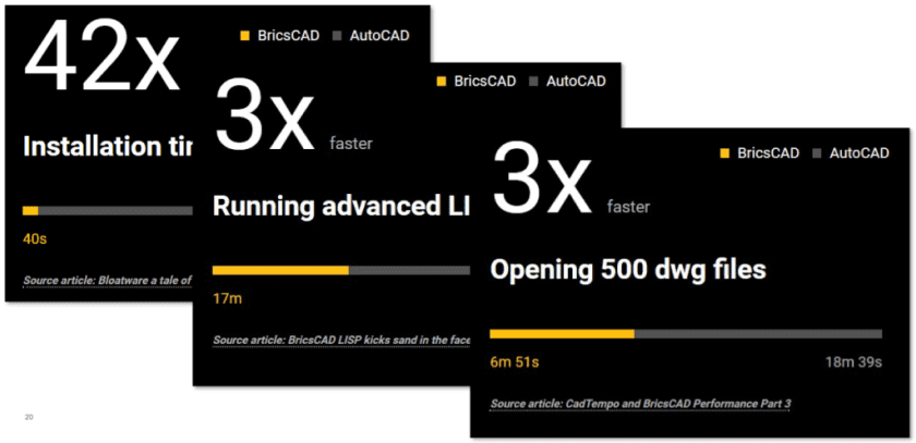 - BricsCAD offers superior performance